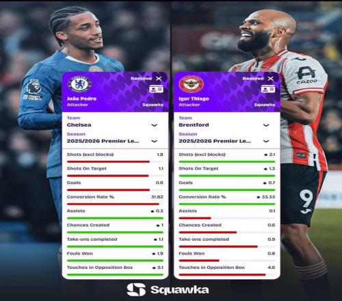 日前,著名数据统计机构Squawka对比了两位高效中锋若昂-佩德罗和伊戈尔-蒂亚戈本赛季在英超的数据。数据显示,佩德罗在串联组织层面优于蒂亚戈,而蒂亚戈则在射门终结层面优于佩德罗。
