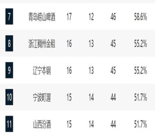 7-11分别是青岛、浙江、辽宁、宁波与山西。青岛和浙江这轮都输球了,青岛输给了福建,核心还是下半场进攻没有打开,被对手逆转,反正球迷都看得莫名其妙。浙江则输给了北控,内线还是太被动了。辽宁这轮逆转同曦,布罗金顿的挖掘对球队的提升是实质性的。宁波大胜新疆,展现了惊喜。至于山西这轮输给广州,核心还是迪亚洛不能打,队内多人出现身体不适的情况。